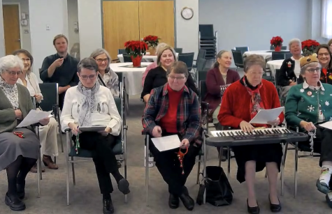 Sisters at Ozanam had several memorable Christmas experiences this year. Five Sisters from Bridgeport came to visit and lead Christmas carols. Sister Claire Bonneau played piano, while Sisters Pat Hammond, Rosanne Mensik, Francis Mensik, and Anne McCarthy sang with the group. All our Sisters beamed with joy!