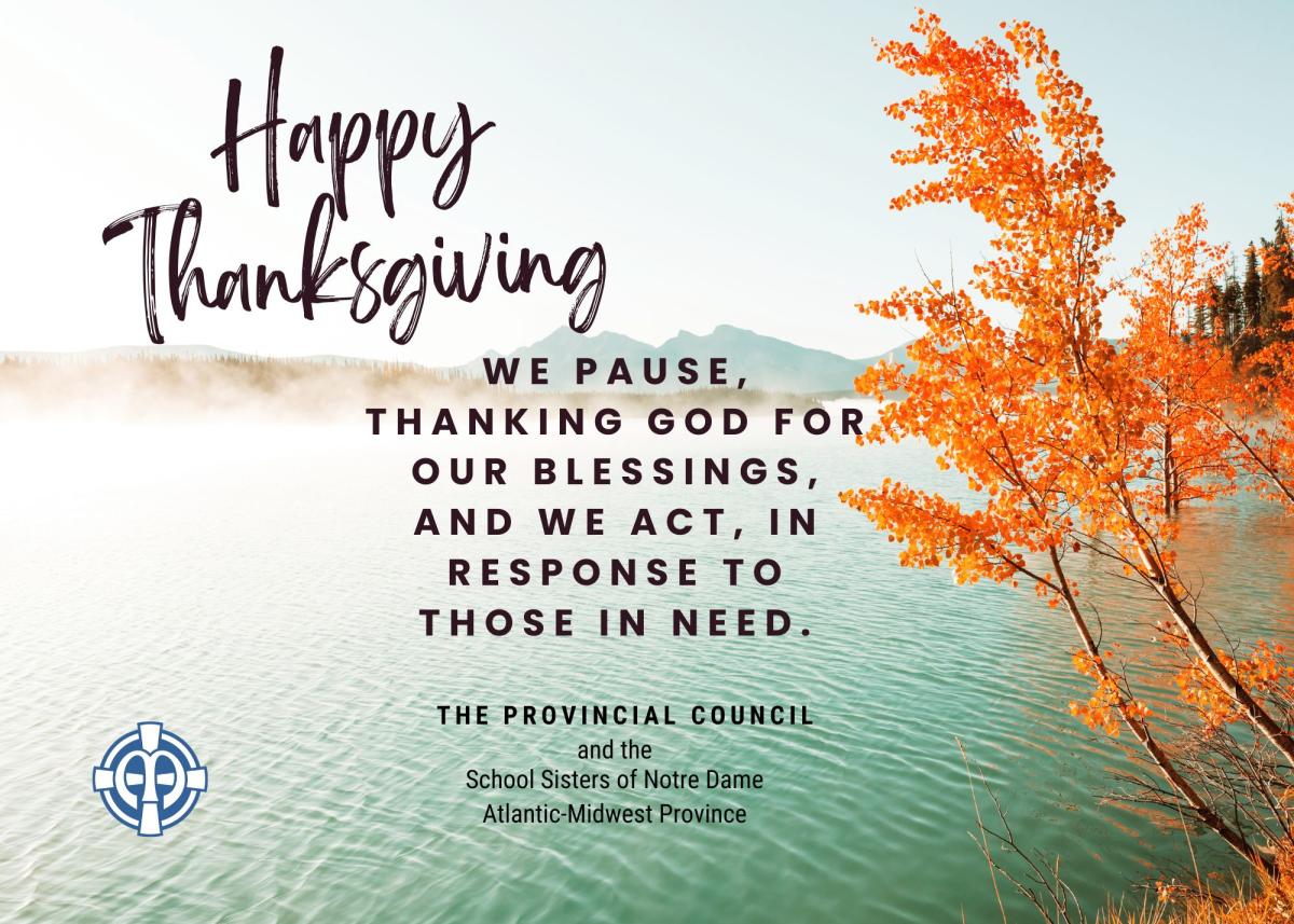 On Monday, October 13, our province celebrates Canadian Thanksgiving Day with our sisters, associates and staff in Canada. We give God praise and thanks for all we have received and pray in gratitude for the abundant blessings bestowed upon us, our family, friends and congregation.