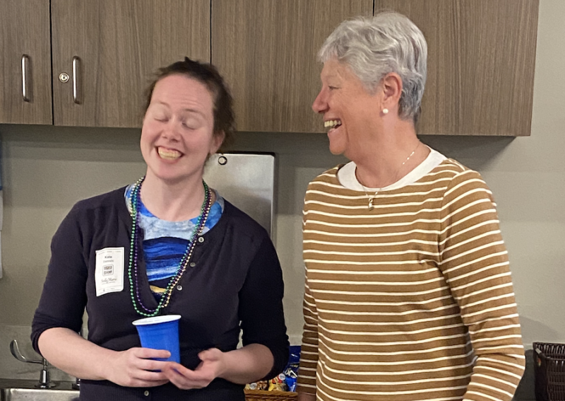 The Community Room was decorated with a sweets table including King Cake, homemade blueberry muffins, strawberries, and fasnachts or “fasting night” treats (Dunkin Donut style!).