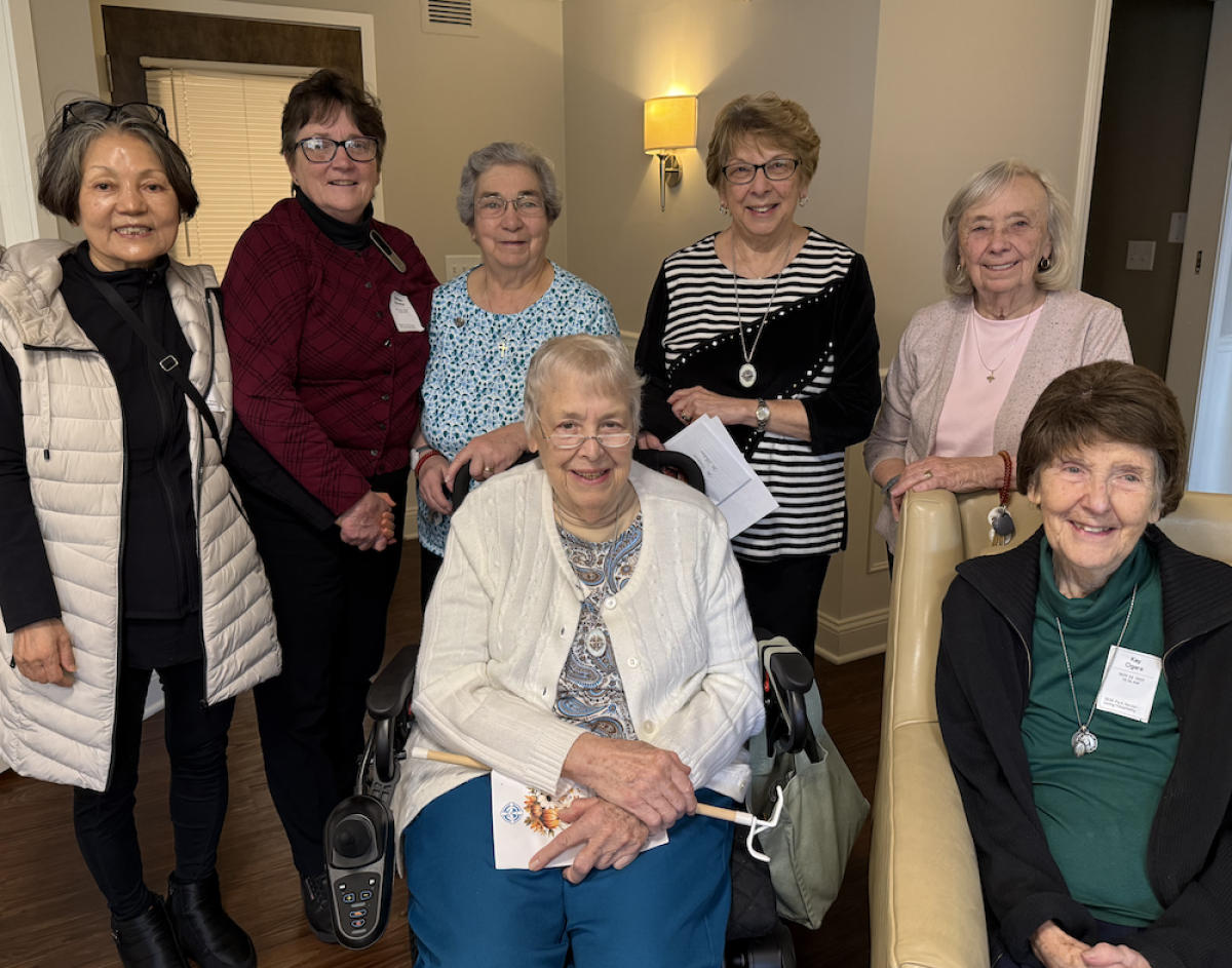 L-R, back row- Associates Julia Lee and Kathy Sylvester, Sister John Vianney Zullo, Associate Carol Jakab, Sister Maureen Fleming; Front Row- Sister Regine Bruder, Associate Kay O'Gara