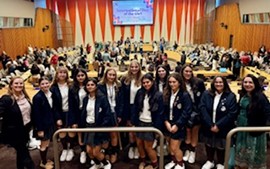Among those present were eleven seniors from the Academy of Holy Angels, who chose to spend their day off from school participating in the event. Accompanied by their teachers, Sarah Allen and Jennifer Cucchisi, the students heard powerful testimonies from girls around the world – both in person and through video – on issues ranging from access to education and healthcare to online safety and discrimination.